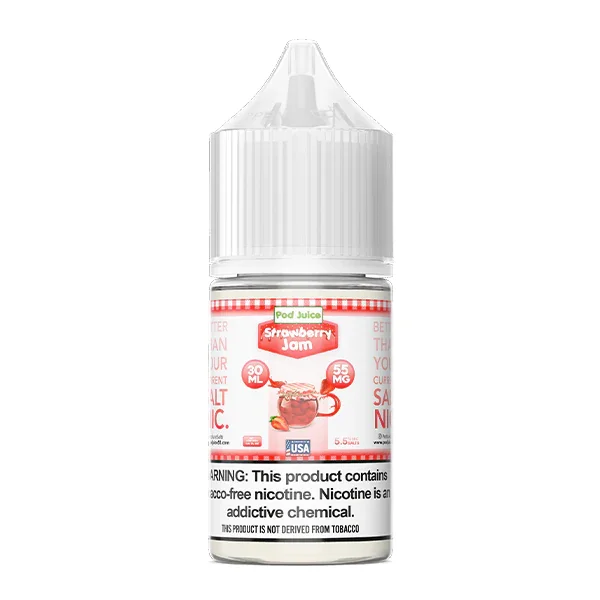 NICOTINE SALTS | INDIVIDUAL BOTTLE Flavor : A succulent strawberry jam in every puff. Shop the delicious Strawberry Jam Pod Juice salt nic juice at wholesale prices today. E-liquid contents : 30mL Nicotine Strengths : 35mg and 55mg Blended for use with Pod Systems Browse more E-Liquid Brands Here