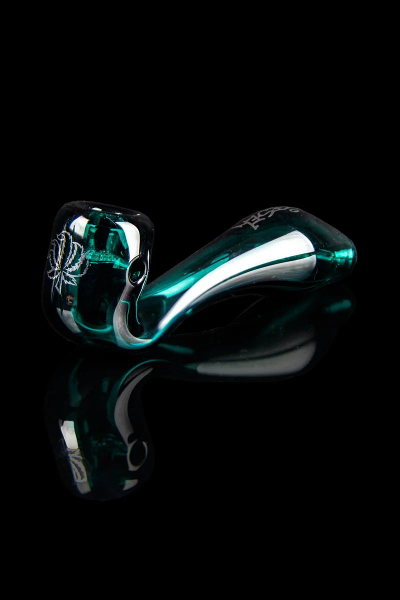 This Puff Puff Pass Strain Pipe is inspired by the legendary Sour Diesel strain. It's a lovely choice for anyone who likes the punch of energy and dreaminess this strain delivers. The classic Sherlock shape gives you a deep bowl with a flat base and a thick neck that smooths down your smoke. The pipe prevents debris from reaching the mouthpiece with the built-in screen and the left-side carb allows you to regulate the airflow. This sleek pipe is made with thick and heavy borosilicate glass in a transparent mint color and completed with Sour Diesel decals. It's pocketable measuring 4 inches - and easy to store with the matching collector's box.