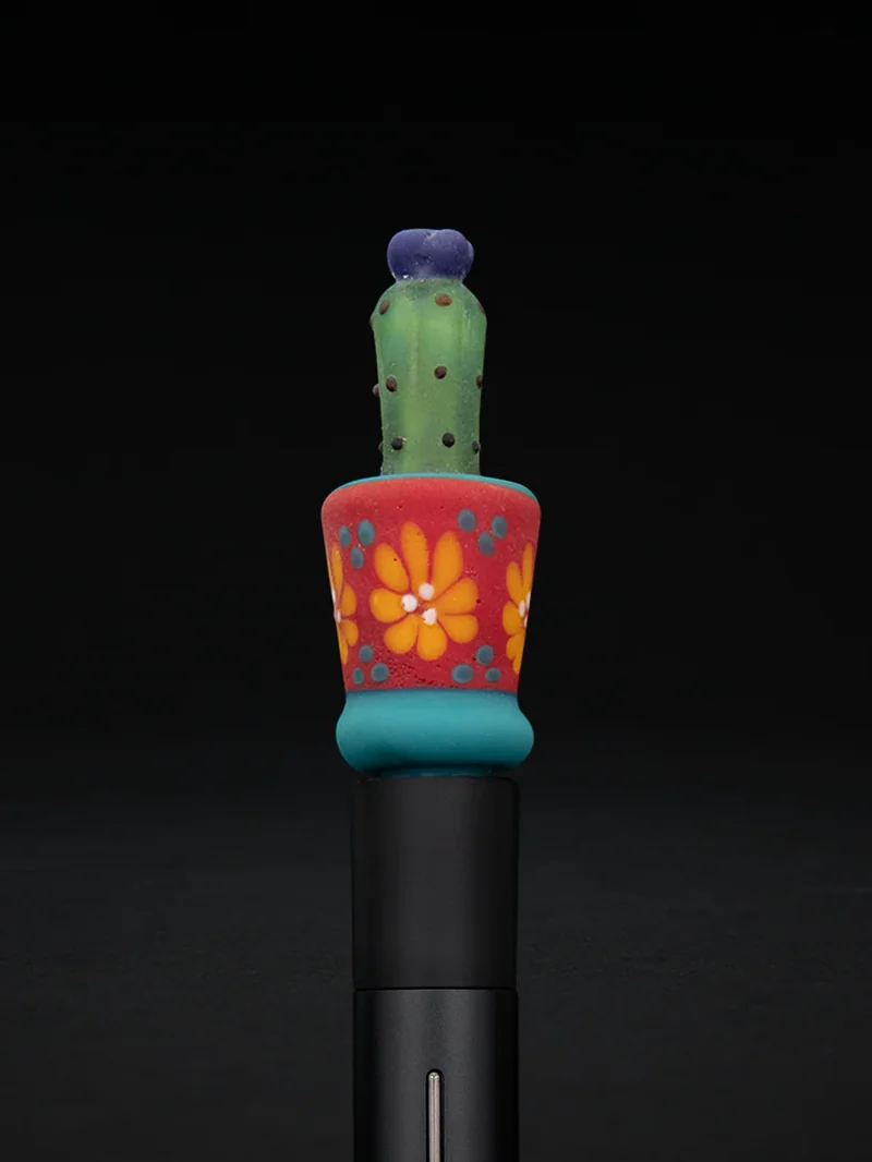 The Pivot Cactus Pot features a sculpted cactus in a pottery-inspired cherry red pot. The decoration on the pot was created using thin colored glass stringers to paint with glass onto its surface. Device not included. All sales final.