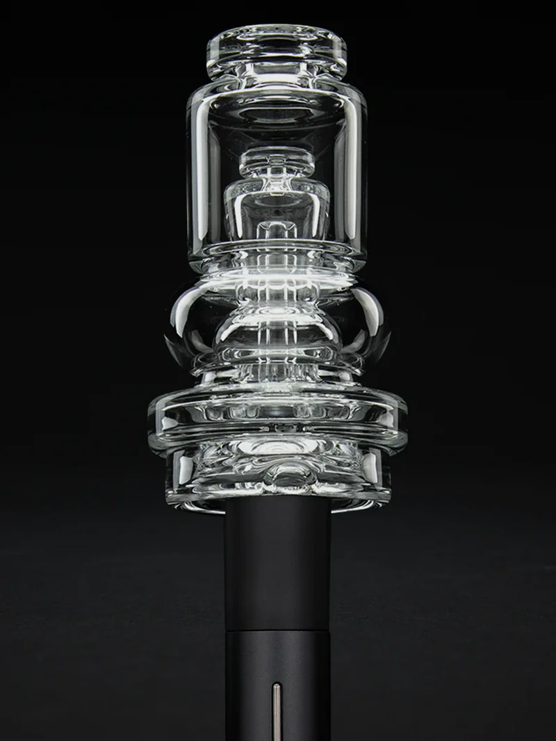 Glass artist, Spider, took the Pivot Glass Marketplace to the next level by creating a glass piece that fits the Pivot, Peak or Peak Pro. This piece fits oversized on the Pivot, while fitting snug into place on your favorite Peak, giving you variety in how you use it. Includes Verticoil from Tuff Tethers to keep it safe while in use. - water filtration Device not included. All sales final.