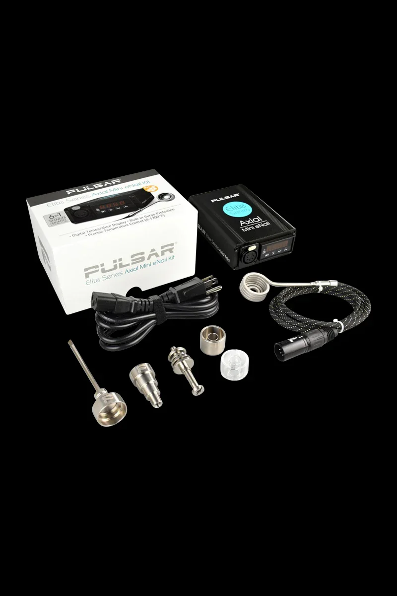 These effective Pulsar Axial Mini eNail Kits are fitting for various titanium and quartz nails that include an eNail coil. The heating design of this product heats the bottom of the nail and the sides, producing even heating throughout the entire surface. All parts in this practical set are compatible with a number of Pulsar Elite Series eNail products. A removable power cord comes with this set along with a heating cord and a titanium carb cap. Digital display with push buttons is available for fast and simple adjustments. Built-in surge protection increases safety to prevent potential incidents when dabbing.