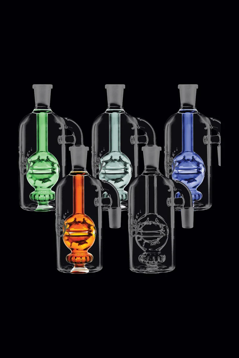 Can't choose between a cool design and the best functionality? You can have both with the Pulsar Egg Ash Catcher. Made with thick borosilicate glass, this ash catcher has a classy egg-style percolator that comes in a broad range of colors. This one of a kind design allows this piece to keep your pipe clean while also delivering impressive filtration for smoothest hits. Comes with a Male joint in 14mm and 19mm sizes and fits bangers, bowls, and pipes.