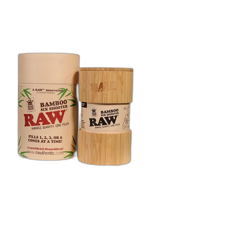 RAW BAMBOO SIX SHOOTER KING SIZE (RAW-103) The RAW Six Shooter is brought to another eco-RAW level with this deluxe bamboo version with magnetic bumped design! This variable quantity filler is designed to match your lifestyle. Sometimes you only want to fill one cone, while other times you’re ready to fill 6 cones with peace.