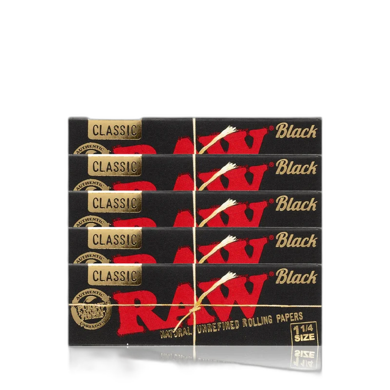 RAW - BLACK NATURAL 1 1/4 - DISPLAY OF 24 RAW Black Paper is double pressed extra-fine for the thinnest unbleached rolling paper we have ever made. This unique artisan paper is produced in Alcoy, Spain where the dry Valencian winds make humidity optimally low. RAW Black 1¼ is so thin that it allows you to truly taste your terps! RAW Black Paper was created for a new generation as the next level of top-shelf smoking