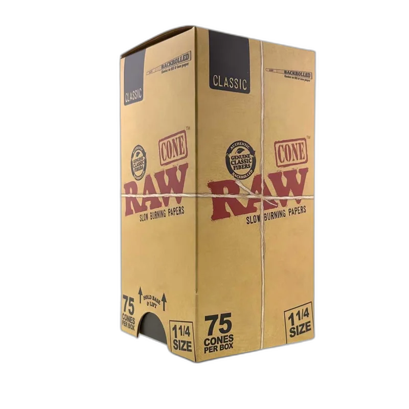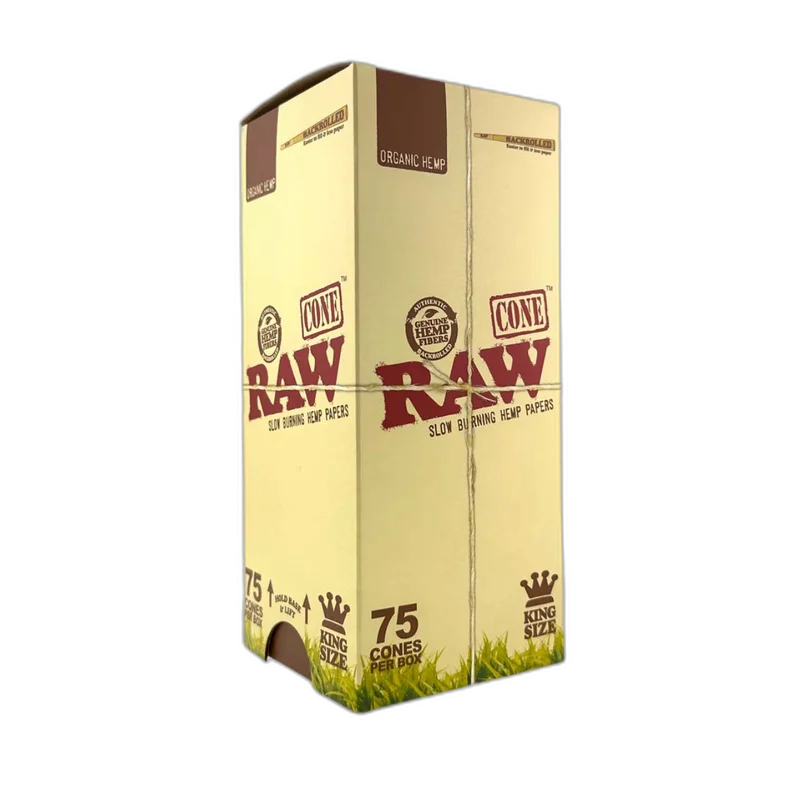 RAW CLASSIC BACKROLLED CONES DISPLAY OF 75 (RAW-182) RAW Black King Size Backrolled Cones offer ultra-thin, slow-burning paper precision-crafted for smooth, clean smoke. Pre-rolled and backrolled for a true RAW experience, these cones are a staple for retailers catering to premium rolling paper customers. Perfect for smoke shop distributors , headshops , and bulk RAW suppliers looking to stock trusted, high-turn smoking accessories. Features: King size/ 1 ¼ backrolled pre-rolled cones RAW Black