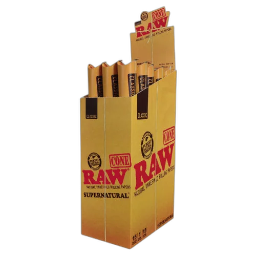 Wholesale/Products/RAW® - Classic Unrefined Pre-Roll Cone Supernatural Size - Display of 15 (MSRP $5.00ea)