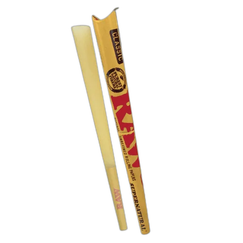 The RAW® - Classic Unrefined Pre-Roll Cone Supernatural Size - Display of 15 offers premium pre-rolled convenience. Comes in a quantity of display of 15. Suggested retail price $5.00. A consistent seller in any smoke shop's pre-roll section. Available at wholesale pricing from Port City Wholesale.