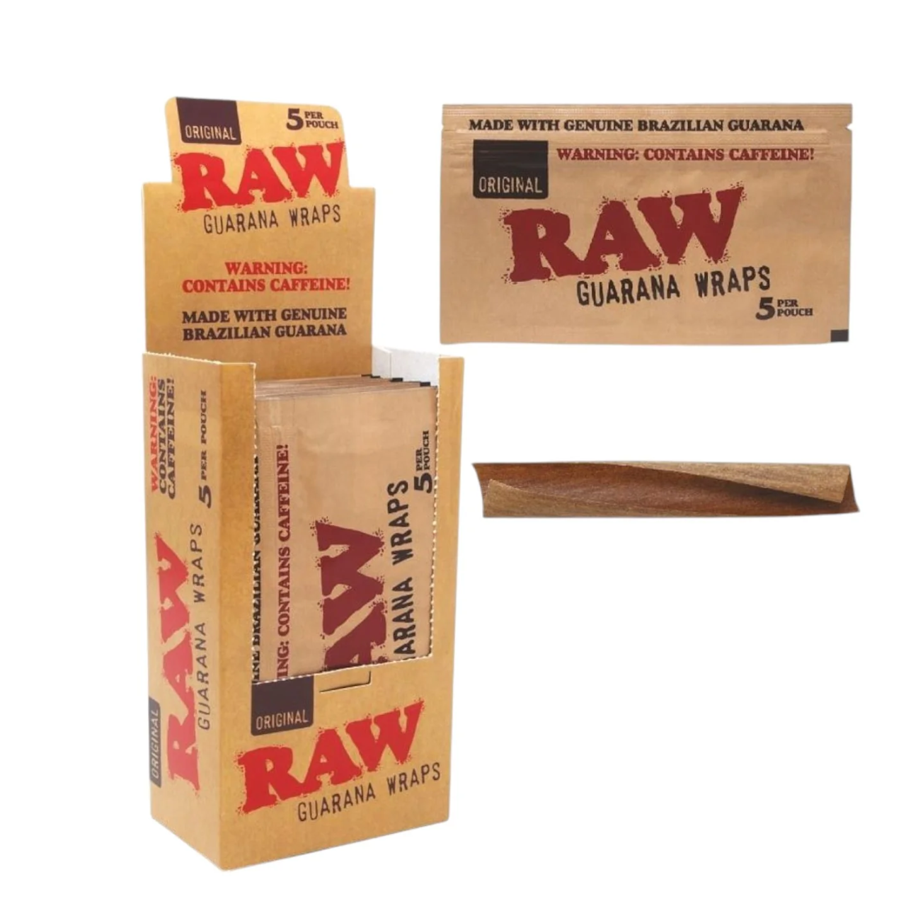 RAW GUARANA INFUSED CAFFEINE WRAPS 5CT PER POUCH DISPLAY OF 25 RAW Guarana Infused Caffeine Wraps combine natural guarana infusion with RAW’s signature wrap quality, delivering a smooth and flavorful smoking experience. Each pouch contains 5 wraps crafted for consistent performance and easy handling, offering a unique alternative to traditional wraps. Packaged in a retail-ready display of 25 pouches, this SKU is ideal for smoke shops and convenience retailers seeking a distinctive, fast-moving w