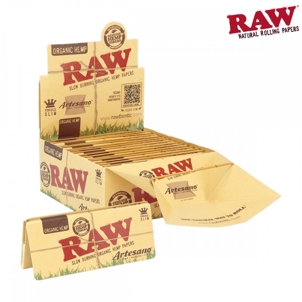 Wholesale/Products/RAW ORGANIC ARTESANO KING SIZE SLIM PAPERS DISPLAY OF 15 (RAW-107)