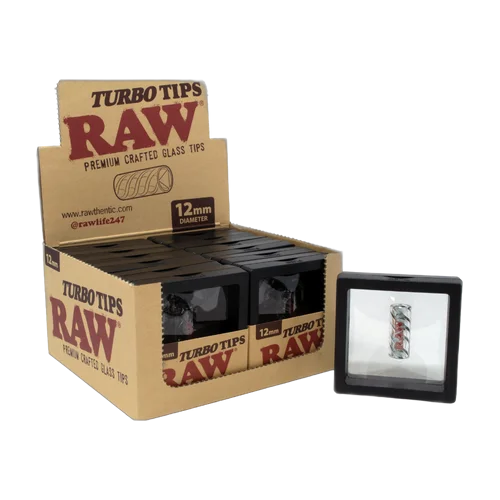 The RAW - Turbo Glass Tips - Display of 12 is a premium smoking accessory. Comes in a quantity of display of 12. Suggested retail price $95.99. Perfect for retail display and consistent seller. Available at wholesale pricing from Port City Wholesale.