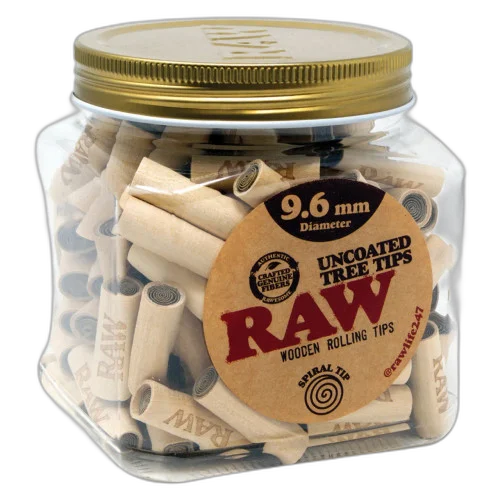 The RAW® - Uncoated Tree Tips 9.6mm - Jar of 130 is a premium smoking accessory. Comes in a quantity of jar of 130. Suggested retail price $1.00. Perfect for retail display and consistent seller. Available at wholesale pricing from Port City Wholesale.