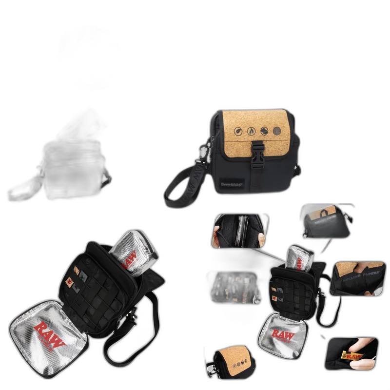 RAW X ROLLING DAY BAG (RAW-94) This RAWking Day Bag has a built-in rolling tray, foil sealed bag-in-a-bag, genuine cork top, Velcro swappable patches, hidden stash pockets, activated charcoal smell-blocking liner, and a unique cross-banded storage area to keep supplies easily accessible AND secure! There are multiple storage compartments and stash areas to make this the ULTIMATE DAY BAG FOR RAWKING!!! RAW x Rolling Papers Day Bag SIze: 4.5″ x 10″ x 9.5″