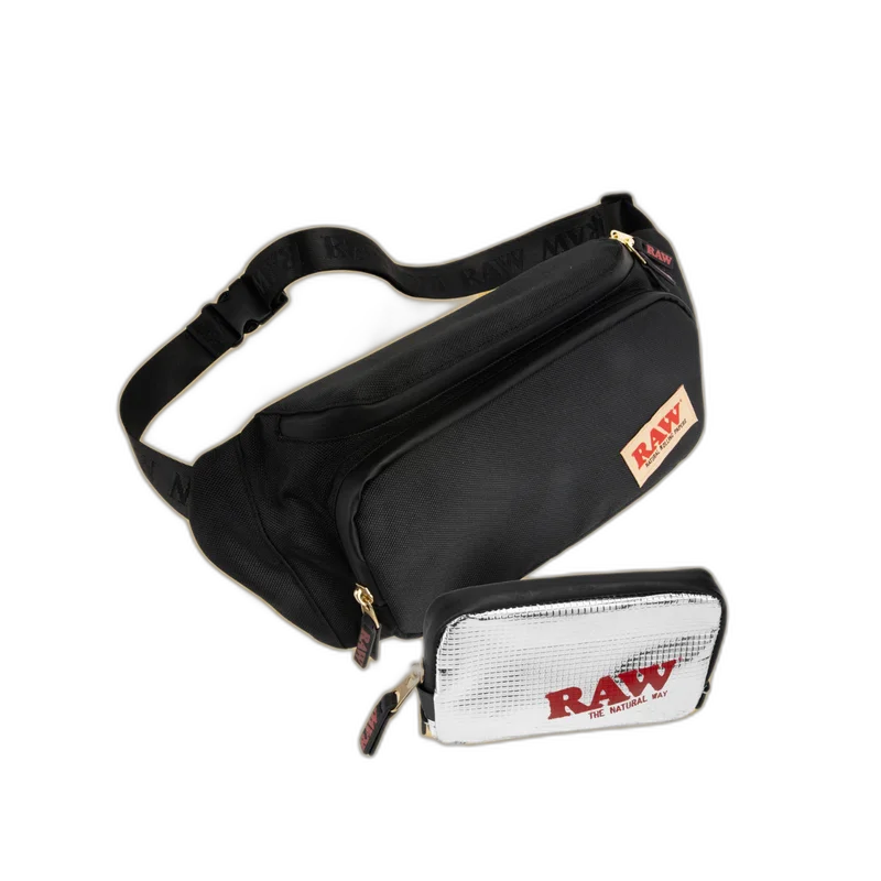 RAW X ROLLING SLING BAG (RAW-93) RAW x Rolling Papers Sling Bag can be used either over-the-shoulder or as a fanny pack. Intelligently designed for real smokers, it features multiple pouches, foil lining, smell-proof interior, hidden back zipper for storage, coated zippers and more! Just be sure you don’t forget where you hid your stash RAW x Rolling Papers Sling Bag Size: 5.5″ x 14.5″ x 6.5″