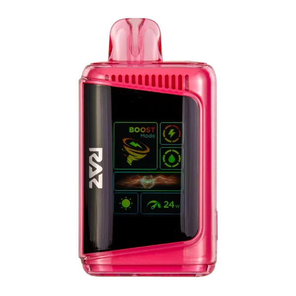 RAZ LTX 25000 DISPOSABLE VAPE 5-PACK (FORMERLY RAZ DC25000) Flavor : Enjoy the perfect balance of sweet, sour and icy flavors in the limited edition Pink Lemonade Minty Os RAZ vape. E-liquid contents : 16ml Nicotine Level : 50mg Puffs per Device : Regular Mode 25,000/Boost Mode 15,000 Battery : 800mAh (Rechargeable via USB-C) LED Screen: E-Liquid, Battery Life, Turbo Mode Indicator Adjustable Airflow Dark and Light Display Mode Browse more disposable vape flavors