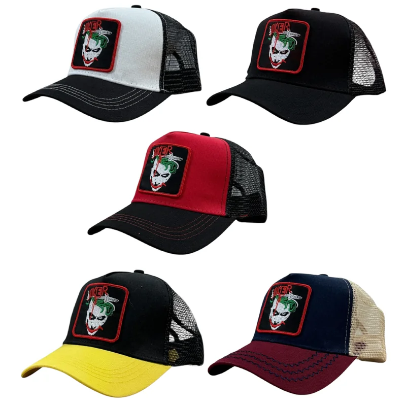 RB JOKER DESIGN FASHION HATS (1CT) RB Joker Design Fashion Hats channel chaotic energy and fearless personality into a bold fashion statement. Featuring a vivid “Joker” themed embroidery, this cap appeals to fans of edgy streetwear and counterculture style. With durable construction, a structured crown, and an adjustable strap, this 1CT hat delivers comfort and attitude in equal measure. Perfect for comic-inspired fashion, novelty shops, and urban retailers seeking conversation-starting headwear