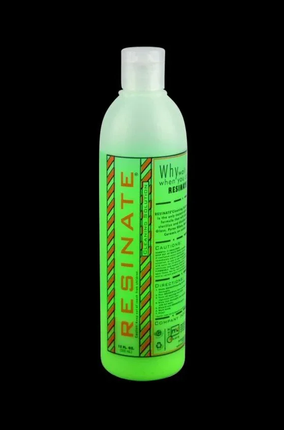 Cleaning your glassware can sometimes be a long and tedious process. It's a chore not many people are as enthusiastic about as a sesh: rightfully so, with months of gunk and stench stored in them, who wants to clean glass that won't be cleaned in the next two months at least. The 12oz or 4oz (Travel Size) Resinate Cleaning solution is a long term solution to the cleaning problem: it's very quick, doesn't have abrasives and is very effective.