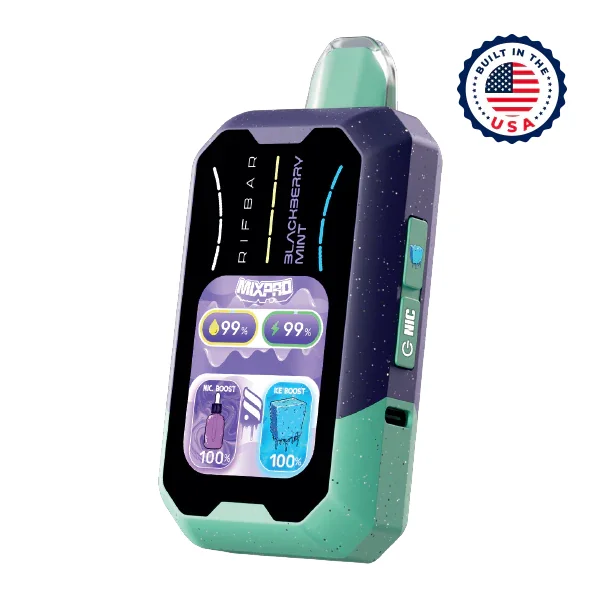 Rifbar Ice Control Vape 5-Pack Flavor: The wholesale Blackberry Mint Rifbar Mixpro 40K has ice control and adjustable nicotine levels. Order wholesale vapes from Mi-Pod today. This Rifbar Mixpro is filled in the USA. Puff Count: ~40,000 E-Liquid Capacity: 18ml Coil: Triple Mesh Coil Features: Adjustable Airflow Flavor Control: Ice Boost Feature Display: Full Color Display tracks battery, e-liquid and customizable settings Battery: USB Type-C Rechargeable Safety Features: Child Lock Mode and Short Circuit Protection Shop Wholesale Disposable Vapes Flavors