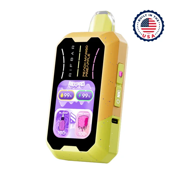 RIFBAR SWEETNESS CONTROL VAPE Flavor : Get the best Rifbar vapes wholesale at Mi-Pod. The Peach Mango Pineapple Rifbar Mixpro 40K has sweetness control and nic control at the push of a button. This Rifbar Mixpro is filled in the USA. Puff Count : ~40,000 E-Liquid Capacity: 18ml Triple Mesh Coil Adjustable Airflow Sweetness Boost Feature Full Color Display tracks battery, e-liquid and customizable settings Battery : USB Type-C Rechargeable Child Lock Mode Short Circuit Protection Shop All Disposable Vapes