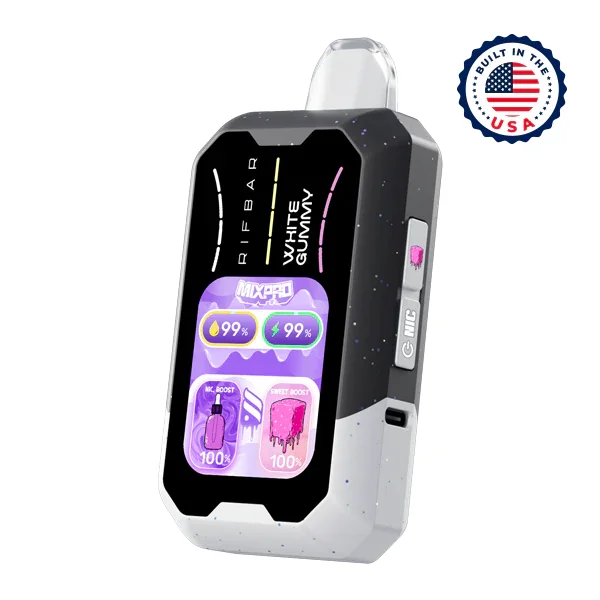 RIFBAR SWEETNESS CONTROL VAPE Flavor : The White Gummy Rifbar Mixpro 40K has sweetness control and adjustable nicotine levels. Order Rifbar vapes wholesale from Mi-Pod today. This Rifbar Mixpro is filled in the USA. Puff Count : ~40,000 E-Liquid Capacity: 18ml Triple Mesh Coil Adjustable Airflow Sweetness Boost Feature Full Color Display tracks battery, e-liquid and customizable settings Battery : USB Type-C Rechargeable Child Lock Mode Short Circuit Protection Shop All Disposable Vapes