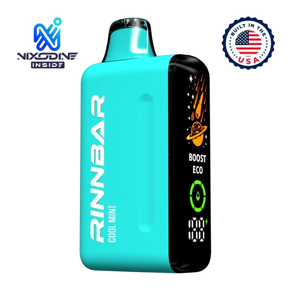 WHOLESALE RINNBAR 50000 NIXODINE VAPE 5-PACK Flavor: The wholesale Cool Mint Rinnbar 50000 Nixodine features the satisfying nicotine alternative Nixodine. Nixodine Strength: 50 Puffs per Device: 50K (Eco Mode), 35K (Boost Mode). Display: Smart LED Display with E-Liquid and Battery Life Indicator. Battery: 850mAh Rechargeable via USB-C Heating Element: Dual Parallel Mesh Coil Manufacturing: Built in the USA Nixodine is a patented non-nicotine blend which provides a comparable experience to nicotine. Related Links Nixodine Products Wholesale Disposable Vapes *Warning: Nixodine Could Be Habit Forming.*