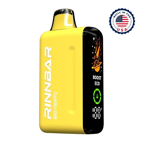 WHOLESALE RINNBAR 50000 VAPE 5-PACK Flavor: The wholesale Maui Pineapple Rinnbar 50000 is a long-lasting, high-puff count disposable vape. Maui Pineapple is a tropical and sweet fruit flavor. Nicotine Strength: 50mg Puffs per Device: 50K (Eco Mode), 35K (Boost Mode). Display: Smart LED Display with E-Liquid and Battery Life Indicator. Battery: 850mAh Rechargeable via USB-C Heating Element: Dual Parallel Mesh Coil Manufacturing: Built in the USA Related Links Rinnbar 50000 Wholesale Disposable Vapes