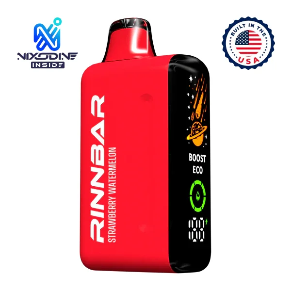 WHOLESALE RINNBAR 50000 NIXODINE VAPE 5-PACK Flavor: The wholesale Strawberry Watermelon Rinnbar 50000 Nixodine features the satisfying nicotine alternative Nixodine. Nixodine Strength: 50 Puffs per Device: 50K (Eco Mode), 35K (Boost Mode). Display: Smart LED Display with E-Liquid and Battery Life Indicator. Battery: 850mAh Rechargeable via USB-C Heating Element: Dual Parallel Mesh Coil Manufacturing: Built in the USA Nixodine is a patented non-nicotine blend which provides a comparable experience to nicotine. Related Links Nixodine Products Wholesale Disposable Vapes *Warning: Nixodine Could Be Habit Forming.*