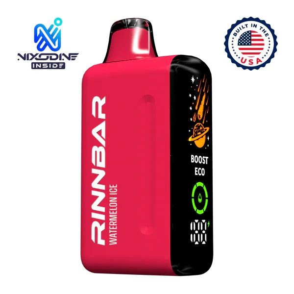 WHOLESALE RINNBAR 50000 NIXODINE VAPE 5-PACK Flavor: The wholesale Watermelon Ice Rinnbar 50000 Nixodine features the satisfying nicotine alternative Nixodine. Nixodine Strength: 50 Puffs per Device: 50K (Eco Mode), 35K (Boost Mode). Display: Smart LED Display with E-Liquid and Battery Life Indicator. Battery: 850mAh Rechargeable via USB-C Heating Element: Dual Parallel Mesh Coil Manufacturing: Built in the USA Nixodine is a patented non-nicotine blend which provides a comparable experience to nicotine. Related Links Nixodine Products Wholesale Disposable Vapes *Warning: Nixodine Could Be Habit Forming.*