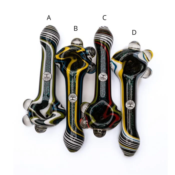 Add bold color and craftsmanship to your collection with the Roots Glass Wig Wag Dichro Spoon Pipe. Measuring 5 inches long, this pipe features vibrant wig wag detailing blended with shimmering dichroic glass, offering a stunning, heady aesthetic. Built from heavy, durable glass, it includes a deep bowl for extended sessions and a side carb for smooth, controlled airflow. Compact yet eye-catching, it’s perfect for everyday use or display. Key Features: Length: 5″ – portable and easy to handle Material: Heavy-duty glass with wig wag and dichroic accents Bowl: Deep bowl for longer sessions Carb: Side carb for airflow control Design: Artistic and functional—ideal for daily use or collectors Whether you're looking to elevate your personal sessions or add a colorful piece to your glass lineup, this spoon pipe delivers on both style and performance.