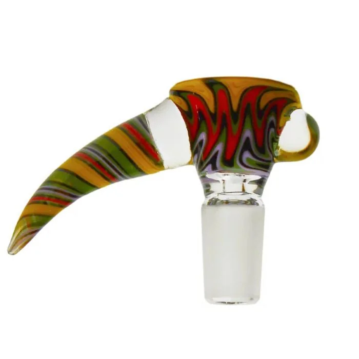 Make a statement with the 14mm Wig Wag Horn Bowl w/ Wart, a perfect combination of functionality and artistic flair. Featuring a vibrant wig wag pattern, this bowl stands out with its swirling colorwork and unique design elements. The horn-style handle allows for an easy, secure grip, while the wart accent adds texture, character, and a bit of extra handling comfort. The 14mm male joint fits most standard water pipes and rigs, making this bowl a seamless upgrade to your current setup. Key Features: Joint Size: 14mm male – compatible with most standard rigs Design: Colorful wig wag glass with unique wart accent Handle: Horn-style for easy handling and visual impact Function: Combines grip, control, and standout style Ideal For: Smokers looking to elevate both the look and feel of their sessions Whether you're personalizing your setup or adding to your collection, this bowl delivers performance with artistic edge.