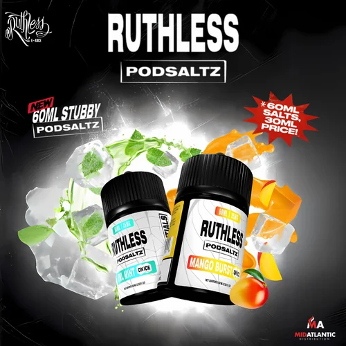 The Ruthless Essentials Salts line delivers bold, flavorful satisfaction with every puff. Designed for low-wattage devices, these 60mL nic salt blends come in cool, fruity, and candy-inspired options—perfect for adult vapers seeking a smooth throat...