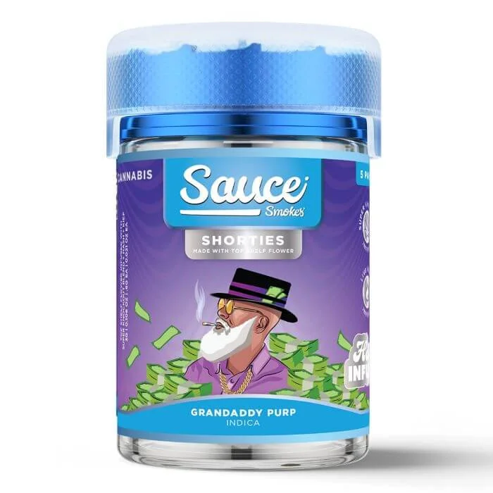 Discover the next level of enjoyment with Sauce Smokes Shorties THC-A Pre Rolls, exclusively available at wholesale prices for vape shop owners. These brand-new pre-rolls are crafted with precision, combining the potency of THC-A flower with the enhanced effects of THC-P and the added allure of Kief dusting. Each pack contains 5 carefully rolled joints, ensuring a convenient and satisfying experience for your customers. With a THC-A flower base, these pre-rolls offer a potent and flavorful encounter, while the infusion of THC-P takes the effects to new heights. The tantalizing addition of Kief dusting provides an extra layer of potency and a visually appealing experience. For vape shop owners, these pre-rolls are available in 10-pack orders, making it easier than ever to stock up and meet the demand of your customers. Elevate your inventory with the Sauce Smokes THCA Pre Rolls Shorties, offering a unique and premium smoking experience that will leave your customers coming back for more. Sauce Smokes THCA Pre Roll Features: THC-A Flower Pre-Rolls. Infused w/ THC-P. Dusted w/ Kief. Sauce Smokes THCA Pre Roll Flavors: Grand Daddy Purp: Indulge in the rich and soothing essence of Grand Daddy Purp. Space Octane: Blast off with the interstellar flavors of Space Octane. Jet Fuel: Ignite your senses with the high-octane flavor of Pack Jet Fuel. White Runtz: Experience the sweet and fruity bliss of White Runtz. Animal Mintz: Unleash the refreshing combination of mint and sweetness with Animal Mintz. Platinum Rose: Delight in the elegant and sophisticated notes of Platinum Rose.