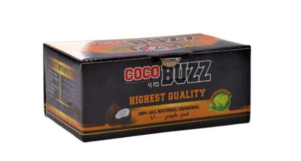 100% natural hookah charcoal made from compressed coconut shells Coco Buzz Hookah Charcoals are odorless, eco-friendly, contain no chemical additives, and has one of the lowest ashing content on any coconut coal on the market
