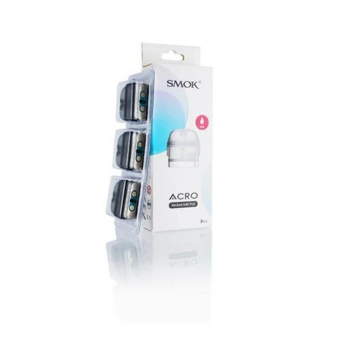 Acro Meshed Pod: Capacity: 2ml. Atomizer Resistance: 0.8ohm. Resistance Output Range: 12W - 15W. Excellent flavor and dese vapor. Acro DC MTL Pod: Capacity: 2ml. Atomizer Resistance: 0.6ohm. Resistance Output Range: 12W - 15W. Quality flavor and pure taste. Acro DC MTL Pod: Capacity: 2ml. Atomizer Resistance: 1.0ohm. Resistance Output Range: 10W - 15W. Intense flavor and strong throat hit.