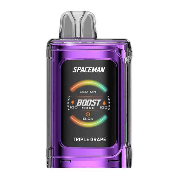 SPACEMAN DISPOSABLE VAPE 5-PACK Flavor : A powerful blast of ripe grape vape flavor right from the vine. E-liquid contents : 18ml Nicotine Level : 50mg Puffs per Device : +20000 Battery : 1000mAh (Rechargeable via USB-C) Master Case Qty : 200 Power Modes : Soft (15W), Norm (18W), Boost (20W) Made with Mesh Coil Smart LED Screen: Battery and e-Liquid Meters Adjustable Airflow Browse more disposable vape flavors