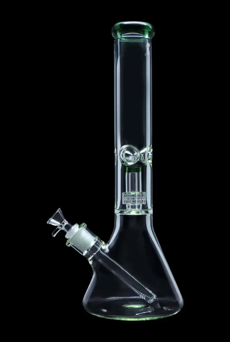 Elevate Your Sessions with Style The 7mm Beaker with Matrix Percolator Water Pipe is a design powerhouse that will take your cannabis experience to new heights. Smooth Hits Guaranteed This water pipe's matrix percolator is the real MVP – expertly engineered to deliver silky-smooth hits every time. The result? A consistently enjoyable experience that'll keep you coming back for more. Color Your World Whether you're a bold and bright green kind of person, a sleek and sophisticated black fan, or a radiant blue or blue jade enthusiast, this 7mm beaker's got a hue to match your unique vibe. Pick the color that speaks to you and get ready to add some serious personality to your smoke sessions. Form Meets Function At 16 inches tall and 7mm thick, this beaker strikes the perfect balance between elegance and durability – because why sacrifice style for substance? Enjoy your favorite herbs in comfort and with a dash of flair, every single time. Ready to level up your cannabis game?