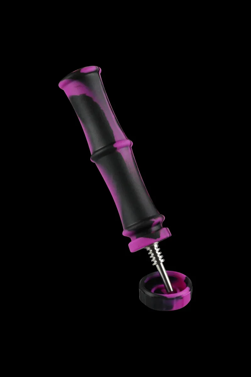 If you like to consume dabs and are looking for an on-the-go piece, you can't go wrong with a dab straw . This Silicone Bamboo Style Dab Straw is a perfect entry level silicone nectar collector , that offers both reliable construction and affordable price. To use, heat up the titanium tip with a torch then dab directly off the included dish. Dabbing with this ti-tipped vape straw is easy-peasy, fast, and discreet. Built with non-toxic, food-grade silicone, this straw features a replaceable 10 mm titanium nail . The end cap protects your straw when out of use and the colorful design will make every session even more fun. The vapor straw measures 5.5 inches when assembled. You can carry it everywhere, it's so discreet and durable. The product is shipped in random/assorted colors.