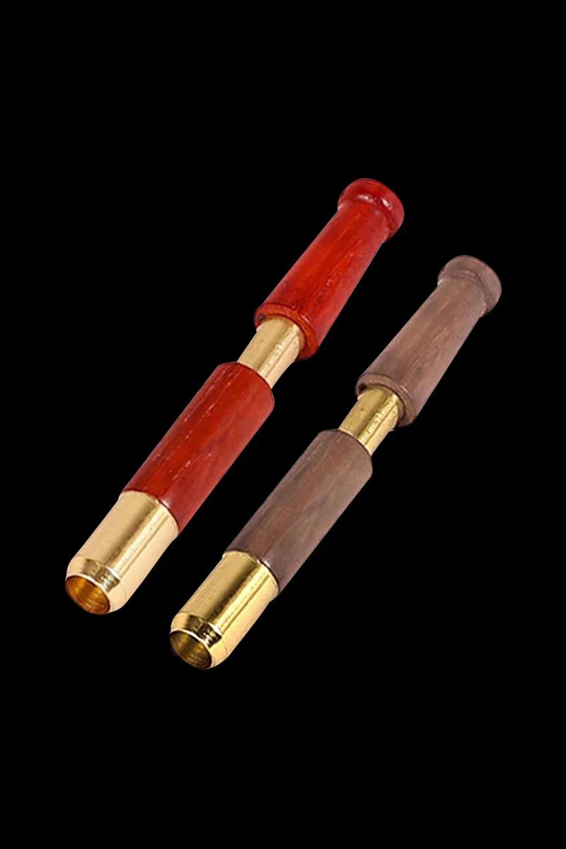 Fancy yourself a fancy one-hitter? Look no further. This one is made with wood and brass and looks absolutely freakin gorgeous. It has a spring-loaded bowl ejector that's great for getting rid of ash quickly and efficiently. It's just 3 inches long and available in various wood tones and designs.