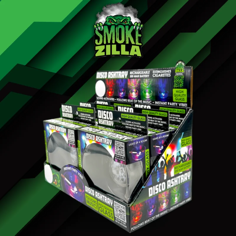 SMOKE ZILLA DISCO GLASS ASHTRAY DISPLAY OF 6 (23743) — a well-crafted rolling tray designed for reliability and ease of use. Made with glass for a premium feel. An excellent addition to any shop inventory or personal collection. Wholesale quantities available at Port City Wholesale.