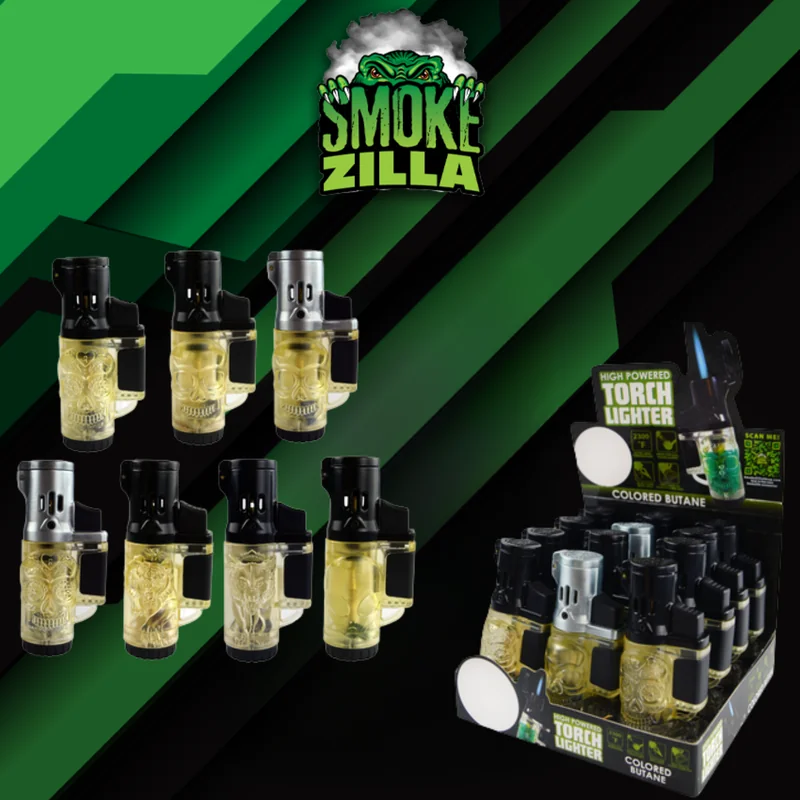 SMOKE ZILLA HIGH POWERED TORCH LIGHTER DISPLAY OF 12 (22383) — a well-crafted lighter designed for reliability and ease of use. Built to last through regular use. An excellent addition to any shop inventory or personal collection. Wholesale quantities available at Port City Wholesale.