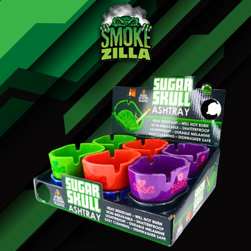 SMOKE ZILLA - MELAMINE SKULL ASHTRAY DISPLAY OF 12 (23921)