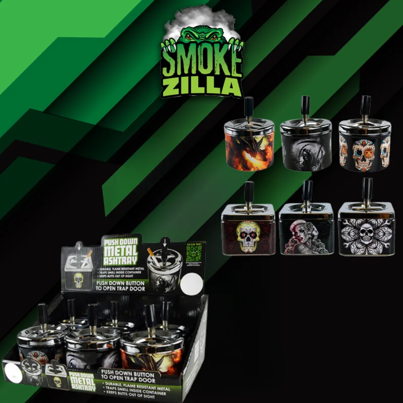 Looking for a quality rolling tray? The SMOKE ZILLA PUSH DOWN METAL ASHTRAY DISPLAY OF 6 (22639) delivers on both form and function. Made with metal to withstand daily use, it is a staple rolling tray that belongs in every smoke shop. Port City Wholesale offers this product at competitive wholesale pricing with fast shipping.
