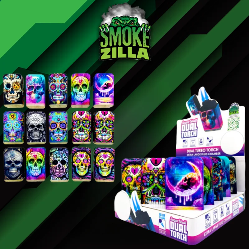 Upgrade your setup with the SMOKE ZILLA SUGAR SKULL DUAL TORCH DISPLAY OF 15 (23822). This lighter combines practical design with solid construction. A dependable choice for both personal use and retail inventory. Shop wholesale at Port City Wholesale for competitive bulk pricing.