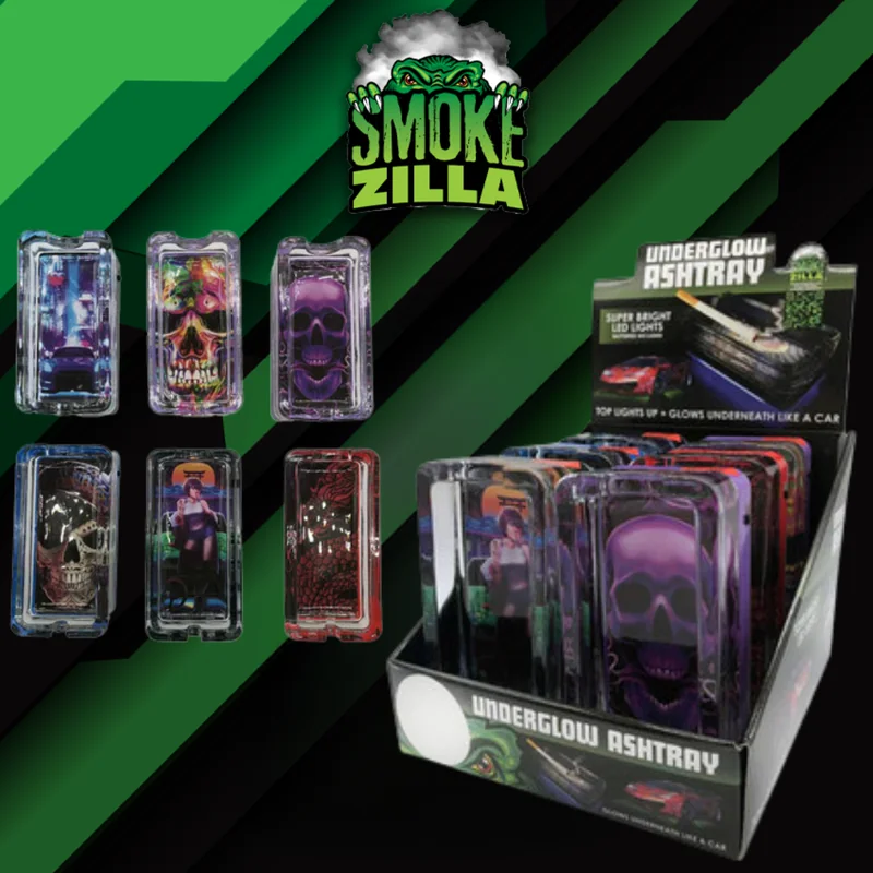 Wholesale/Products/SMOKE ZILLA UNDERGLOW GLASS ASHTRAY DISPLAY OF 6 (23103)