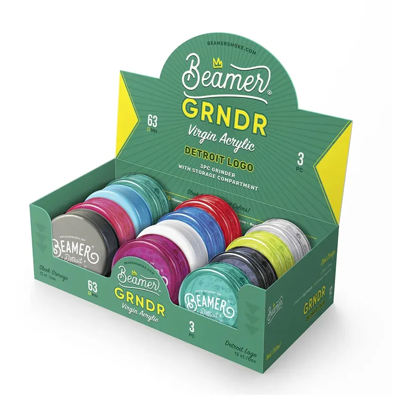 Beamer Virgin Acrylic 3-Piece 63mm Grinder - Design and Color May Vary – (12 Count Display)