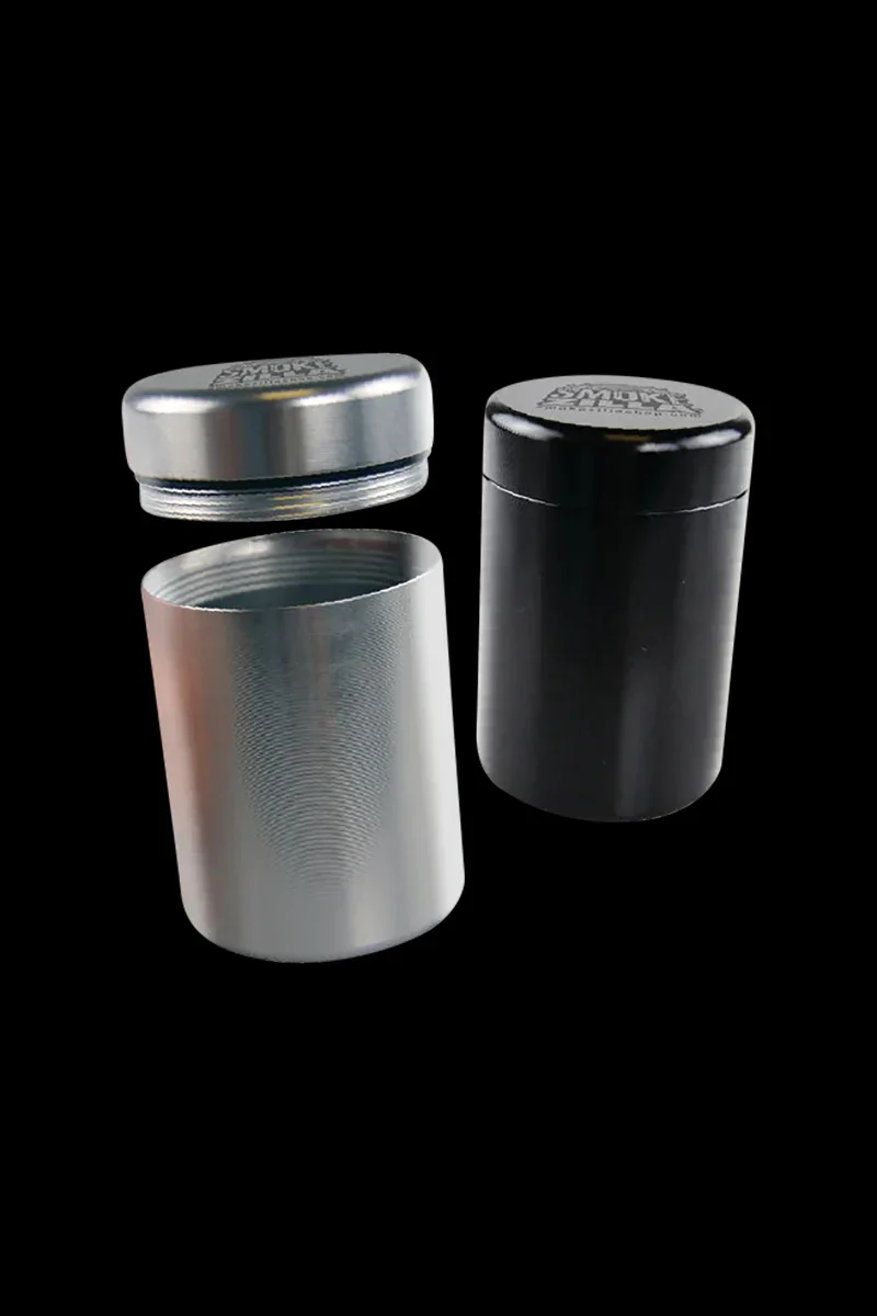 Ditch those plastic baggies and containers and keep your herbs fresher longer with these durable stash jars by Smokezilla . The jars are sold in a 4-piece set so you can separate your strains or share a jar or two with a friend. These crush-proof jars are made of aircraft-grade aluminum and feature a metallic finish on top. They measure 2.5" x 1.7" in size. The jars are designed to keep moisture out and freshness in plus they're smell-proof so nobody will know what you're storing.