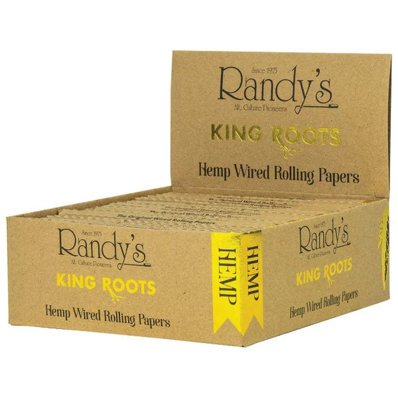MSRP $2.99 PER PACK Roots are Randy’s line of Hemp Rolling Papers. Randy’s Roots are made of 100% Hemp, and are 30% thinner than Randy’s Classic Wired Rolling Papers. EASY TO ROLL Many people find that rolling their herb into a paper can be a tedious and sometimes intimidating experience but our wired rolling papers make it so much easier. The embedded wire has many functions, one being that it acts as a spine to help give our paper stability when rolling. This makes our one-of-a-kind wired rolling papers perfect for advanced smokers and beginners alike. EASY TO PASS The paper that’s made to share! As you burn your herb and the embedded wire begins to expose itself you now find that you have a perfect handle to help pass your paper among friends. No more awkward exchanges and clumsy attempts of passing your herb and it being dropped. The wired rolling paper is perfect for enjoying with your favorite people. BETTER AIRFLOW An unexpected feature of the embedded wire is that it adds a perfect tunnel for consistent airflow through your paper as you enjoy it. Burn your paper down to the very last bit without concern of it running. Our stainless steel wire continues to expose itself the more you enjoy your paper and as you get to the end of your session our wire acts as a built in roach clip so that you can burn all of your herb and not your fingers! No more stinky, burnt finger tips. Our wired rolling papers are good to the last puff. USA QUALITY Our papers started in San Francisco in 1975 and have gone through many changes since then but one consistent element is that our papers are manufactured here in the USA with medical grade American stainless steel wires and top quality rolling paper. 25 Count per box. Classic Wired Paper