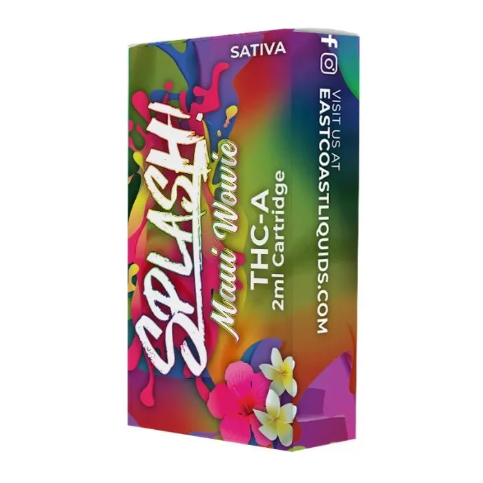 Introducing the Splash THC-A Cartridge 2G – a premium vape cartridge crafted for smooth, flavorful, and potent sessions. Each cartridge contains 2 grams of high-quality THC-A distillate, delivering fast-acting effects and rich flavor in every puff. Designed for standard 510-thread batteries, it’s perfect for on-the-go convenience and reliable performance. Each display includes 10 cartridges, making it ideal for retail or personal use. Whether you're unwinding or staying active, this cartridge delivers a balanced, satisfying experience. Key Features: 2g THC-A per cartridge 510-thread compatible Smooth, clean draw Lab-tested for purity and potency 10-count display box Available Strain: Maui Wowi (Sativa): A tropical-inspired sativa with notes of pineapple and citrus, perfect for uplifting daytime vibes. Experience bold flavor and next-level potency with the Splash THC-A Cartridge – your new go-to for premium THC-A vaping.
