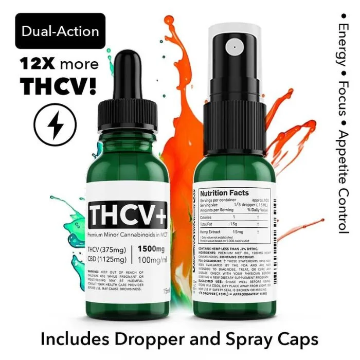 Introducing our remarkable THCV tincture, designed to boost your energy levels and enhance focus, while aiding in appetite control. Don't let this opportunity pass you by! Spyglass Wellness Dual Action THCV Oil Tincture Features: Potent 1500mg per bottle. Equipped with 100 dual-action doses. Each dose provides 15mg (1 pump/.15ml). Experience heightened focus, sustained energy, and appetite management with our THCV tincture.