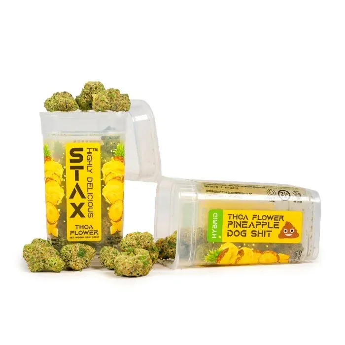 Experience premium potency with Stax THC-A Flower, now available in 4.2G jars in a convenient 12-count display. Each strain is hand-selected for flavor, strength, and freshness, delivering a next-level hemp experience for enthusiasts who crave top-shelf quality. These high-THCA buds are perfect for those seeking powerful effects, bold terpene profiles, and exceptional smoking sessions. Available Flavors: Guavalicious (Indica): Rich, exotic guava flavor with calming effects—ideal for evening relaxation. Huckleberry Soda (Indica): A fruity and fizzy profile with deep body highs and mellow vibes. Illemonati (Sativa): Bright citrus notes with energizing, creative effects for daytime use. Orange Cannoli (Hybrid): A creamy citrus dessert blend balanced for anytime enjoyment. Pineapple Dog Shit (Hybrid): Funky tropical aroma meets smooth, euphoric potency. Tropicana Cherry (Sativa): Zesty cherry-orange burst with an uplifting and focused buzz. Whether you’re seeking to chill or energize, Stax THC-A Flower offers a premium option for every preference.
