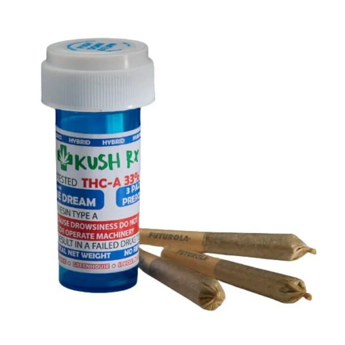 Introducing Sticky Green Kush RX THCA Pre-Rolls, packed with a potent 33% THCA content. Each pre-roll is crafted with a premium blend of Blue Dream Hybrid, Pineapple Express Sativa, and Sour Diesel Indica, delivering top-tier therapeutic benefits. Ideal for managing chronic pain, inflammation, and stress, this high-resin strain is non-psychoactive, making it perfect for both novice and experienced users looking for significant relief without the high. Available in packs of 3 or 10 pieces, each containing 1.5g of expertly cultivated flower. Flavors: Blue Dream Hybrid: A balanced mix of relaxation and gentle euphoria. Pineapple Express Sativa: Uplifting and tropical, great for daytime use. Sour Diesel Indica: A classic strain with calming effects and a pungent, diesel-like aroma. Experience the therapeutic power of Sticky Green Kush RX THCA Pre-Rolls today!